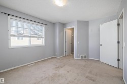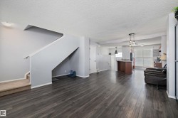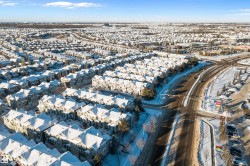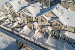 Welcome to this lovely 3-bed townhome with a double attached garage & a serene location within the complex in the sought-after Hamptons. The main floor features a bright, open layout with a modern colour palette & laminate flooring. The kitchen is both stylish & practical with great cabinet space, black appliances, a pantry & an oversized peninsula with seating which flows into a dedicated dining area & bright living room. A convenient 2-pce bathroom completes the main level. Upstairs, the primary bedroom includes a walk-in closet, while two additional bedrooms provide space for family, guests, or a home office plus a full 4-pce bathroom. The lower level offers excellent storage, laundry & direct access to the double garage. Outside, enjoy a fenced west-facing front yard and patio - perfect for soaking up the afternoon & evening sun. This home is close to schools, parks, walking paths, transit, shopping, and offers quick access to major routes. A fantastic opportunity in a great location - don’t miss it!