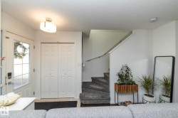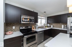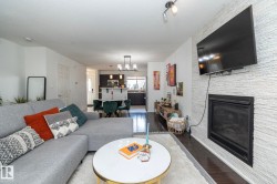 This clean and well-maintained duplex offers comfort, convenience and access to one of Edmonton’s most sought-after lake communities.The main floor features gleaming hardwood floors, open-concept living, a real stone gas fireplace, quartz countertops, stainless steel appliances, custom closets and plenty of storage.Upstairs, you will find two bedrooms plus a spacious loft (easily convertible into a third bedroom).The primary suite showcases a gorgeous stone feature wall, walk-in closet and a bright en-suite bath filled with natural light. Your south-facing backyard is built for entertaining with a massive deck, pergola, privacy wall, and heat-resistant stone BBQ wall. The double detached insulated garage includes an extra storage loft—a rare bonus! Located just steps away from parks, schools and all the amenities Summerside offers including exclusive lake access for swimming, paddleboarding, boating and more.