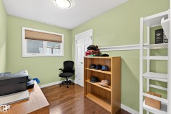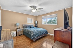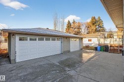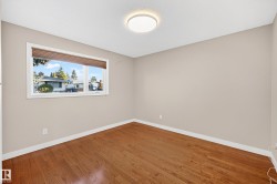 Fresh, stylish, solid , upgraded family home. Welcome home to this 5-bed, 3-bath home delivers modern living on a quiet, cherished street. The designer kitchen stuns with quartz counters, a canopy hood fan, glass tile backsplash, undercabinet lighting, custom storage, panel-front dishwasher, and upgraded appliances. The bright living room with a gas fireplace feels effortlessly inviting, with oak hardwood in the dining room and main floor bedrooms. The main bath brings spa vibes with heated tile floors, a soaker tub, and a rain shower. The spacious primary suite features a custom walk-through closet plus a sleek 2-pce ensuite. The 80% finished basement adds two bedrooms with euro egress windows, den, a family room with gas fireplace, a rec room, a third bath & laundry. Enjoy central A/C, a front deck , and a rear composite deck with pergola . The oversized heated triple garage is a rarity, offering 220V power, workshop space, shelving, window A/C, and an extended driveway with tons of parking.