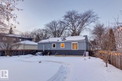 Set in one of Edmonton’s most sought-after neighbourhoods, this beautifully updated home is steps from parks, trails, and schools. Situated on a 7,948 sq ft pie-shaped lot with southeast rear exposure, this home boasts a massive backyard with raised garden beds, a thriving vegetable garden, mature Saskatoon and raspberry bushes and RV parking. Inside, you’ll find a bright main floor with a renovated kitchen, charming living and dining areas, two bedrooms, and a refreshed 4-piece bath. The fully finished basement adds a third bedroom, a spacious rec room, and tons of storage. Lovingly upgraded over the years, including furnace, shingles, siding, soffits, fascia, electrical, plumbing, insulation, ductwork, kitchen, appliances, flooring, paint, trim, doors, and a full bathroom renovation. Located on a gorgeous treelined street in the ever more popular Holyrood community, this bungalow is full of character and light. Welcome home!