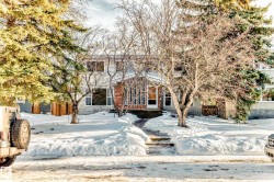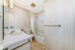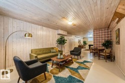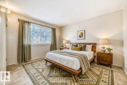 Spacious 2557 sq.ft. 2-story home in the heart of Belgravia! Situated on quiet tree-lined street with a 600 sq.m. lot (54'x120'), backing the Charles Simmonds Park! The home is bright + open with great natural light, plus numerous upgrades including windows (2020), shingles (2020) , sewer line, eaves, electrical. As you enter you are greeted with hardwood flooring in the living room area, plus new lino throughout the kitchen, dining + hallway. The dining room has a wood-burning fireplace for warmth and ambiance, with easy access out to the deck, yard + views of the park. The upper levels have a total of 5 bedrooms, with two full bathrooms on the top floor plus a small bonus room area. On the main you will also find another usable office/bedroom, with 2-piece bath adjacent to it. The lower level features a rec room area with t + g pine, laundry area + extra storage. Complete the package with a double detached garage + large driveway. Great location close to parks, U of A, River Valley, Whyte Avenue + LRT!