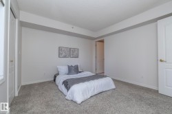 Welcome to The Cosmopolitan, perfectly situated in the heart of downtown Edmonton—adjacent to Railtown Park and just steps from MacEwan University, Rogers Place, and vibrant city amenities. This bright and spacious suite offers an inviting open-concept living area that flows seamlessly into a well-appointed kitchen, ideal for both everyday living and entertaining. The home features two generously sized bedrooms, two full bathrooms, in-suite laundry, and air conditioning for year-round comfort. Recent updates include a new microwave hood fan and dishwasher (2021) and a new stove (2023), adding modern appeal and peace of mind. Residents enjoy access to a well-equipped fitness centre, indoor bike storage, and heated underground parking. This smoke-free, pet-free home has been well cared for, with pets permitted in the building subject to approval. An excellent opportunity to enjoy urban living at its finest.