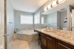 1,862 sq ft fully finished 2 story home which backs onto the park and school field in sought after Summerside! Extensive upgrades throughout featuring exposed aggregate driveway & sidewalk. Main level has engineered hardwood floors, kitchen w/ granite counter tops & stainless steel appliances, large living room and dining room. Main level laundry room and 2 piece bath finish the main level. Upper level w/ huge bonus room w/ 2 additional bedrooms & 4-piece bathroom. Primary bedroom w/ 4-piece ensuite & walk-in closet overlooking the park space finishes the upper level. Lower level is fully finished w/ large family room/fitness area & 3-piece bath. Backyard backs the park so you can watch your kids walk to the K-9 school! Oversized maintenance free deck, custom built exterior shed and heated water feature with fish! Located on a quiet cul-de-sac, a short walk from Summerside beach & clubhouse - enjoy the year-round lake amenities including skating, boating, fishing & tennis. Must be seen to be appreciated.