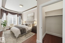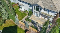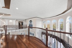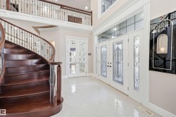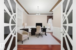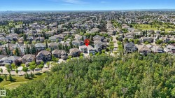 A RARE find perched across from the breath taking RAVINE on a quiet street lined w/mature Elms. Steps from the park/playground & natural wetland pond. Impressive tile roof, & stone tile exterior. Custom Executive home exudes elegance & true workmanship w/5283 sf of luxury PLUS a F/Fin bsmt (7400 sf ttl). 7 bedrms, main flr den & 6 FULL bathrms. Stunning floating curved hardwood stairwell, barrel & vaulted ceilings, 8' solid core doors & upgraded hardwood throughout main/upper. For the growing family or multi generational family, this 2 sty will check off all the boxes incl a FIVE car tandem garage, Chef’s kitchen to prep family meals, massive multi purpose bonus rm, generous sized bedrms & O/S windows w/natural light galore. Stunning primary bedrm/ensuite w/steam/spray. Lower level features in floor heating, wet bar, 2 large bedrms, family rm, games area & a home theatre. Private SW facing yard w/a huge deck for outdoor entertaining. Heated 36x30 garage w/drains, H/C H2O & 11' ceilings potential car lifts