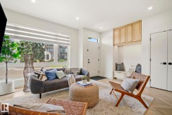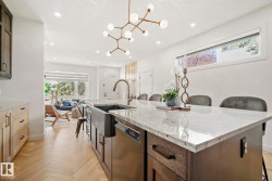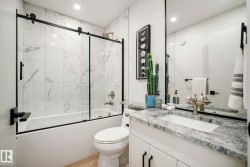 Stunning 2.5-storey home on iconic Strathearn Drive with incredible River Valley and Downtown views. Offering over 2,400 sq ft of living space, this net zero home features living space with an open & bright plan, designer finishes and premium upgrades. The kitchen has a large island, 2-tone cabinetry, granite counters & backsplash and premium Bosch appliances with gas range. The living/dining areas have designer lighting, fireplace, 9' ceilings & herringbone hardwood flooring. The open stairway leads you upstairs to the primary suite with walk-in closet & 5-piece ensuite with freestanding tub + separate shower. Add'l bedroom on this level, plus a full 4-piece bath & laundry. The 3rd-floor loft offers a custom bar & a stunning rooftop terrace with panoramic views. The finished basement with ICF construction has a large rec room, add'l bedroom & full bathroom. Enjoy the professional landscaping, patio for entertaining, EV ready dbl detached garage & solar panels. Close to great trails, park, schools & more.