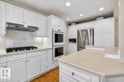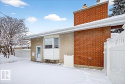 Classic Mid-Century Modern bungalow featuring beautifully remodeled interior! Conveniently located in central SE Edmonton. Spacious 3 bedroom + den, two full baths plus ensuite in primary bedroom, over 2400 sf on two levels. Professionally modified floor plan and elegant decor inspired by long term owners. This fully equipped and well maintained Ace Lang home features a large kitchen with island, newer appliances including double ovens, gas cooktop + walk in pantry. Ash hardwood floors, LR gas fireplace, recessed lighting & speakers, remote controlled blinds in LR & DR + A/C. Fully finished basement great for the family and entertaining, custom wet bar with beverage cooler, gas fireplace, built-ins and storage room with freezer. Furniture can be included. Heated & insulated oversize double garage with work bench and storage + large private patio. Move in ready!