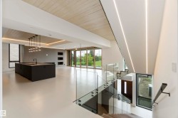 Discover unmatched luxury in this award-winning Mass Timber home-the 1st of its kind in Alberta-offering over 6300sqft of living space across 4 levels. Designed by POSTMARK w/custom millwork by Scott Arthur, this architectural showpiece is perfectly positioned to capture stunning valley views & exemplifies modern sophistication. The top floor is a serene retreat, featuring a spacious primary suite with a walk-through closet, spa-inspired bathroom & a private hot tub with panoramic views. Thoughtful details include in-floor heating, 2 elegant F/P & timeless finishes. On the main floor, a refined library with a built-in humidor leads through a hidden entrance to a private poker room/ventilated cigar lounge—an exceptional space for entertaining. The media room delivers the ultimate cinematic experience, while the 1 bedroom, 1 bath garage suite offers versatile guest or rental potential. A double detached garage completes this remarkable property. This home is more than a residence—it’s a bold statement!