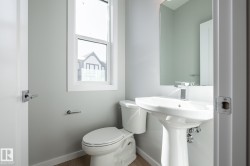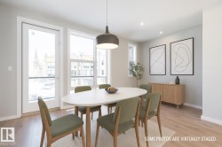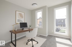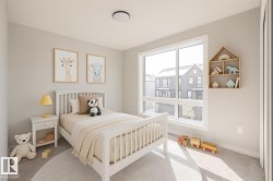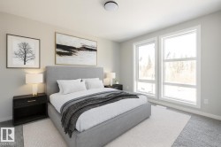 Experience maintenance-free living in the desirable Southwest community of Rutherford. This spacious 3-storey townhouse offers over 1500 sq ft of bright, modern living with floor-to-ceiling windows and stylish vinyl plank flooring. The open-concept main floor features a sleek white kitchen with quartz counters, a pantry, and plenty of space to entertain. Enjoy the comfort of “yours and mine” ensuite sinks, upper-level laundry, A/C, LED lighting, and abundant storage. The large primary bedroom is filled with natural light, complemented by two additional generously sized rooms—ideal for kids, guests, or a home office. With a single attached garage, tandem driveway parking, and close proximity to schools, parks, and everyday amenities, this home blends contemporary ease with community convenience. SOME PHOTOS ARE VIRTUALLY STAGED.