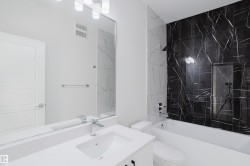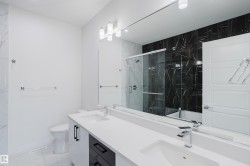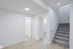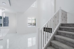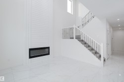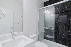 Welcome to this captivating half duplex in the highly desirable community of Aster. The main floor offers a spacious layout with tile flooring, an extended kitchen with ample cabinetry and counter space, a separate spice kitchen, a versatile den, and a full bathroom with a standing shower. The open to above living room creates a striking centerpiece with abundant natural light and a grand sense of space. Upstairs you will find three well sized bedrooms including a primary suite with a five piece ensuite, along with a bonus room that adds extra flexibility for your family’s needs. The fully finished basement is developed with a legal two bedroom suite that provides additional living space or excellent rental potential. Located close to schools, shopping, parks, and major roadways, this home combines functionality and value in a prime location.