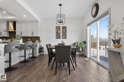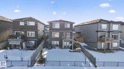 Walkout home on a regular lot, ideally located in a quiet cul-de-sac and backing onto open space with pond views and walking trails directly behind. The low-traffic setting offers a safe, family-friendly environment. The upper level features three bedrooms plus a bonus room, including a spacious primary suite with walk-in closet and private ensuite. Convenient upper-floor laundry adds everyday ease. The main floor offers a bright open-concept layout with living area, kitchen, dining space, pantry, and a functional mudroom off the attached heated garage. The fully finished walkout basement features a full kitchen, large recreation area, bedroom, full bathroom, and rough-ins for separate laundry. The walkout provides a private entrance with a dedicated side pathway. Additional highlights include central air conditioning, a concrete patio at grade, upper deck with stairs to the yard, and future access to 41 Avenue for convenient community exits.