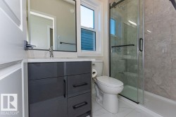 Situated on a lovely tree-lined street in West Jasper Place, this elegant infill home combines style and practicality. With an open layout, it features top-notch finishes, including a tile backsplash, BUILT-IN stainless steel appliances, a large island, and quartz countertops. This beautiful home includes 3 bedrooms upstairs with their own individual bathrooms with walk-in closets plus a 2-bedroom LEGAL basement suite with side entry. With 10 ft ceilings on the main floor and 9 ft upper level and basement, custom cabinets, triple pane windows, and luxury vinyl flooring, it exudes elegance. The luxurious primary suite upstairs offers a 5-piece ensuite and a large walk in closet with barn doors. Ideal for FIRST-TIME HOME BUYERS with income potential or INVESTORS. Located near public transit, minutes from West Edmonton Mall and Downtown, offering the perfect blend of luxury and convenience.