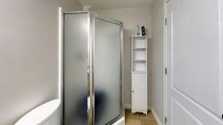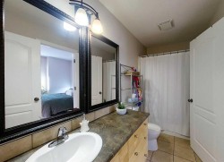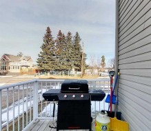 Welcome to this beautifully maintained end-unit townhouse condo, tucked away in a quiet pocket of Glenwood. Designed with both comfort and style in mind, this upscale home offers a spacious and functional layout ideal for modern living. The main floor features a generous entry with closet storage and an open-concept kitchen, dining, and living area highlighted by rich hardwood flooring and an abundance of natural light. The kitchen is finished with maple cabinetry, modern countertops, stainless steel appliances, a pantry, and ample prep space. The large dining area opens onto a west-facing deck with aluminum railing and gate, perfect for evening sun and outdoor relaxation. A cozy living room and convenient 2-piece bathroom complete the main level. Upstairs, you’ll find a spacious primary bedroom with a walk-in closet and direct access to the main 4-piece bathroom, along with two additional well-sized bedrooms. The fully developed basement offers excellent versatility with a large family room, a den with a window (easily converted to a fourth bedroom), a 3-piece bathroom, and a utility/storage room with stacked washer and dryer. Enjoy the convenience of two dedicated parking stalls directly in front of the unit. With low monthly condo fees and upscale finishes throughout, this property is an excellent option for buyers seeking low-maintenance living or investors seeking a trouble free rental property.