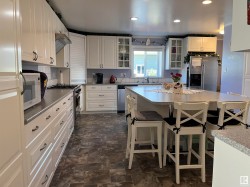You can't imagine what this home has to offer. Start with the convenient, efficient, dream kitchen. 3 pantries, abundant cupboard space, pull out drawers, dumbwaiter to cold room, wine rack, gas stovetop with electric oven, a (chefs stove), 4.8' x8' island that also seats 4 people and much more. As you enter through the leaded glass doors into the foyer, you will notice how open the living room/dining area is featuring birch floors. The main bedroom is unique in design with and oversized ensuite, including a jetted tub. even main floor laundry. The basement features 2 bedrooms, lg rec room with kitchen, in floor heat plus more. The backyard is a gardeners dream, with raised gardens, green house within floor heat and heated plant bench, plant waterers, etc. Added bonus is the triple car garage, ICF construction, with in floor and overhead heat. This structure is ICF as well.