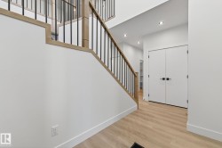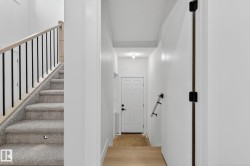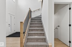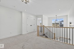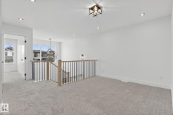 Welcome to this stunning 2,141 sq. ft. brand-new home, designed with modern style and everyday comfort in mind. The open-concept main floor features luxury vinyl plank flooring, an elegant electric fireplace, and a bright, contemporary kitchen complete with stainless steel appliances, quartz countertops, soft close cabinets/drawers w/undermount lights and sleek modern light fixtures. Upstairs, you’ll find a convenient second-floor laundry area—washer and dryer included—, bonus room and 3 spacious bedrooms offering comfort and style. The primary bedroom has a feature wall and attached 5 pc ensuite. This energy-efficient home is built to last, with triple-pane windows and hot water on demand. Step outside to your private deck, perfect for relaxing or entertaining. The side door entrance provides excellent potential for future basement development, adding flexibility and value. Combining luxury finishes with thoughtful design, this home delivers the perfect blend of sophistication, function, and efficiency.