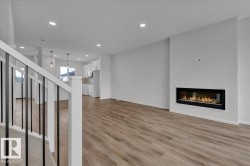 IMMEDIATE POSSESSION! 5 Things to Love About This Alquinn Home: 1) Bright & Open Main Floor – Enjoy seamless flow between the living, dining, and kitchen areas with an electric fireplace for cozy evenings. 2) Chef-Inspired Kitchen – Featuring a breakfast bar, ample cabinetry, and thoughtful storage solutions that make daily living effortless. 3) Smart Layout – Mudroom at the back entry, main floor powder room, and upper-level laundry for everyday convenience. 4) Room for Everyone – Over 1400 sqft with 3 bedrooms one of which is a spacious primary with walk-in closet and private 4pc ensuite. 5) Ideal Location & Extras – Back lane access, separate side entrance, and steps to parks, playgrounds, schools, and amenities. *Photos are representative*