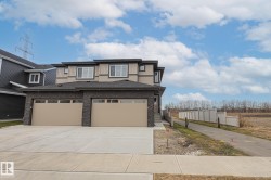 This stunning duplex offers the perfect balance of space, comfort, and modern design. The main floor features a bright, open-concept living area complete with a stylish kitchen, spacious dining room, and cozy living space with access to the backyard, perfect for gatherings or relaxing evenings. A front den or office and a convenient 2-piece bathroom add to the thoughtful layout. Upstairs, discover three well-sized bedrooms, including a luxurious primary suite with a walk-in closet and a 4-piece ensuite. The additional bedrooms each include their own closets and share another full 4-piece bathroom. A large bonus room and upper-level laundry area complete this floor, providing both practicality and room to unwind. This home truly has everything you need for modern family living. Close to many amenities including school and shopping centers! Don't forget you have greenspace behind you, a walking trail beside you and greenspace in front of you! Location! Location! Location!