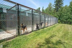 Built to last & stand the test of time, this beautifully designed home located 55 mins from Edmonton is situated on 24 acres of rolling land. This well-designed custom-built home displays superb workmanship & attention to detail. A perfect balance of Cathedral Ceilings creating a sense of grandeur & elegance; Chalet Style Triple Pane Windows fill the home with sunlight & the meticulously built Pine interior adds a sense of warmth & coziness. With just over 3,000 Sqft of Living Space enjoy the Spacious Loft Style Primary Bedroom, or the Library which could double as an Office. Walk or Ski the many Groomed Trails. A portion of the basement has been left for you to complete allowing you to add Bedrooms and/or a Games Room with direct access to the vast Yard. Included is a small Workshop/Woodshed & Profitable year-round 2,000 Sqft Turnkey Kennel Business. Located just off HWY 16, Highway Frontage Land can add potential revenue for advertising signage & some exclusive RV Storage. Explore the possibilities!