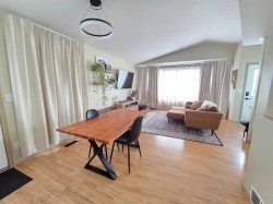 Located in Pinnacle Ridge, this beautifully maintained 882 sq ft bungalow shows exceptionally well and would make an ideal starter home or revenue property. The main floor features 2 bedrooms, 1 bathroom, an abundance of natural light, charming decorative arches, and a well-sized kitchen with maple cabinets overlooking the dining area.The fully developed basement offers a spacious family/rec room complete with a wet bar and pool table—perfect for entertaining. Outside, you’ll find a fully fenced and landscaped backyard with additional parking accessible from the alley. Conveniently located close to schools and parks, this home clearly reflects pride of ownership inside and out.