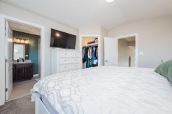 One owner home , that is absolutely immaculate and well cared for. This 4 Bed 3 Bath fully developed home with south backing yard and no rear neighbors will be sure to check all the boxes. Spacious tiled entry way welcomes you , with must have coat closet. Heading up a few stairs brings you to the main floor. Main floor consists of popular open concept kitchen , dining and living room. Kitchen boasts updated granite counter tops with extended kitchen island for bar seating great for entertaining, corner pantry, and ample cabinet + counter space. Dining is large enough for a dining table of any shape or size, with patio door to your back deck great for traeger or BBQing. Living room hosts stunning feature wall and large south backing window allowing natural sun all day long. Remainder of main floor is completed with two bedrooms and full bathroom. Making our way up to the master bedroom oasis, that has big walk in closet, and full en-suite. Heading to your fully finished basement you will be welcomed with grand second living room ( projector + screen can stay or go with the sale) fourth bedroom, full bathroom, laundry room, and utility room that provides incredible amount of storage space. Attached hated double car garage is excellent for our longer winters, as well sellers willing to leave work bench + built in tool box as well as storage rack. Backyard is south backing perfect for the green thumbs out there , as well its fully fenced and secondary white dog run can stay or go with the sale. Icing on the cake is under the deck storage as well as this home has CENTRAL AIR for our recent hot summers over the years. Book your viewing today as this home amplifies pride of ownership.