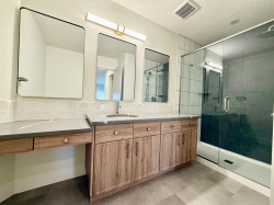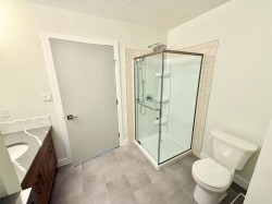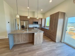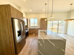 Welcome to this stunning brand new home by Hall-E-Wood Construction, offering over 2,200 sq. ft. of beautifully finished living space in a smart modified bi-level design. Finished with quality materials throughout, this home is ideal for families or anyone seeking style, comfort, and functionality. Step inside to find luxury vinyl plank flooring on the main level, a bright open concept living space, and the kitchen is complete with quartz countertops and stainless steel appliances. The spacious deck and fully fenced yard make it perfect for entertaining and relaxing outdoors. The main floor primary suite offers a walk in shower, make up vanity, and ample closet space. Two additional bedrooms and another full bath are located upstairs. The fully developed basement adds even more living space, featuring a large family room, 4th bedroom, another bathroom, laundry, and the comfort of in floor heating. This property boasts a 24 X 24 heated attached garage, massive concrete driveway, and a huge RV parking pad complete with a sani dump. With quick possession available and new home warranty included, this turn key home is move in ready and built to impress.