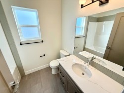 Brand new 2,817 square foot modified Bi-Level built by Hall-E-Wood Construction is ready! Walking in the front door you are welcomed with a huge entryway, and luxury vinyl plank flowing through the main areas. The open concept kitchen, dining and living areas are modern and functional. The kitchen features Quartz countertops, corner pantry, island with an eating bar, and stainless steel appliances. Patio door off the dining room bringing you to a deck and access to the fully fenced and landscaped yard. The primary bedroom is found on the main floor and has a huge walk in closet with additional storage, and a 5 piece ensuite with a soaker tub and separate shower. Upstairs you will find 2 more bedrooms, another full bathroom, mountain views, and a large laundry room with shelving. The developed basement features in floor heat throughout, a media room, 2 more bedrooms, a third full bathroom, and even more storage. No space wasted! Adding on to this exceptional home is a double attached garage with in floor heat, huge concrete driveway, RV parking along the side with the convenience of your own sani dump, quick possession and new home warranty! Now is your chance to upgrade!
