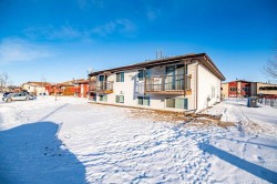 Fantastic 4 Plex in the heart of Innisfail. Fully tenanted with wonderful tenants (2 long term). All units have been updated in some capacity and all feature upgraded furnaces. All units have 2 bedrooms on the lower level and a 4pc bathroom. Upstairs is where you will find laundry facilities, the living rooms and kitchens. All tenants on month to month lease agreements. No current pet restrictions or fees in place. Newer commercial development close by making this a great location also situated next to a park.