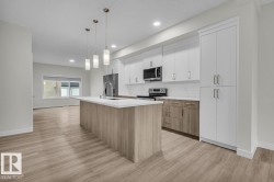 The Horizon 18’8” by Look Built Inc. offers 1,495 sq ft of modern living space in the family-friendly community of Black Stone, Leduc. This beautifully designed duplex features 3 bedrooms and 2.5 bathrooms, blending comfort and functionality for today’s homeowner. The open-concept main floor includes a bright kitchen with quality cabinetry and a large island, flowing seamlessly into the dining and living areas—ideal for entertaining or everyday life. Upstairs, the spacious primary bedroom includes a private ensuite and walk-in closet, complemented by two additional bedrooms, a full bath, and convenient laundry. Possession is tentatively set for December 2025, with the home currently at the insulation stage. Home includes roller blinds and quality finishes throughout. Photos are representative.