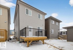 Welcome Home! Wonderful 1600 sq ft 2 Story Home with Double Detached Garage. Terrific floor plan in wonderful location. Close to schools, shopping, work, and easy access to highways, airport, and all Leduc has to offer. Total of 4 Bedrooms and 2.5 Bathrooms with Unfinished Basement and Side Entrance. Tons of upgrades throughout. Rear deck, sidewalk to side door, feature walls, rear lane access, and more. Main floor open concept with ample living space, full kitchen with island, pantry, and dining area. Main floor bedroom works as flex space or den. Rear entrance and half bathroom. Side entrance with access to unfinished basement with tons of potential. Upper floor has 3 large bedrooms and 2 full bathrooms. Upper floor laundry room. Large master bedroom with walk in closet and ensuite bathroom. Terrific property with great curb appeal and location.