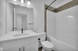 Presenting The Hudson, quality-built by the Italian-owned San Rufo Homes! West-Backing and offering 9' main ceilings, this contemporary layout with 1500sf has been designed for modern family living. This stunning residence features 3 spacious bedrooms, 2.5 bathrooms, & the convenience of upstairs laundry, making daily routines effortless. The open-concept main floor flows seamlessly from a well-equipped kitchen to a bright, welcoming living area—perfect for hosting gatherings & everyday meals. The primary bdrm upstairs is well-sized, with walkin closet, 5pc ensuite, accompanied by two additional bdrms & thoughtfully designed full bathroom. Built with eco-friendly materials, energy-efficient systems, & high-performance insulation with comfort & sustainability, featuring triple-glaze windows & HRV technology for enhanced living quality. With appealing curb appeal, low-maintenance landscaping, & proximity to essential amenities like Leduc Common, Premium Outlet Mall, Woodbend Marketplace, & Airport!
