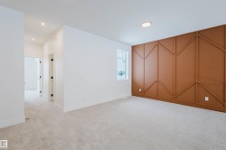 Welcome to this stunning home located in the sought-after Blackstone community of Leduc. This beautifully designed property features a rare triple-car garage with RV parking, offering exceptional space and convenience. The main floor boasts a spacious open-concept layout with an extended kitchen, a large pantry, a bright living room with an impressive open to above feature, and a main floor bedroom with a full bathroom, ideal for guests or multigenerational living. Upstairs, you will find a luxurious primary suite, two additional generously sized bedrooms, and a large bonus room perfect for family living or entertaining. The walkout basement is unfinished, providing endless potential for future development. Close to parks, walking trails, schools, and amenities, this home offers comfort, style, and a great location.