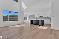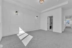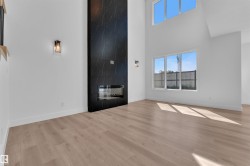 Step into this beautiful 3-bedroom, 2.5-bathroom home that offers both comfort and style. The moment you walk in, you're welcomed by a striking open-to-above great room, flooded with natural light and a tiled fireplace—a true focal point for gatherings or quiet nights in. The heart of the home is the extended kitchen, featuring a smart layout with abundant cabinetry and prep space, seamlessly connected to a walk-through pantry for added function and flow. A main floor den provides the perfect space for a home office, creative studio, or quiet retreat. Upstairs, a spacious bonus room offers versatility for a media lounge or play area. The primary suite includes a spa-like 5-piece ensuite and a generous walk-in closet, creating a private sanctuary. Two additional bedrooms and a full bathroom complete the upper level. Practicality meets convenience with a laundry room featuring a built-in sink, and an attached double garage offering plenty of storage. Finished in a modern and neutral palette.