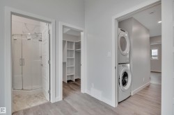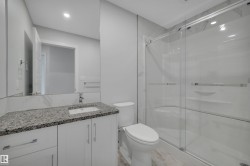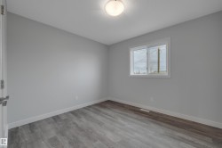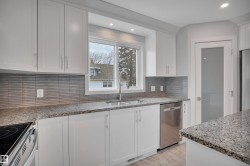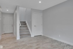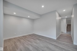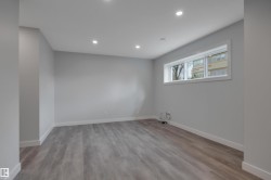 Updated half duplex (2025) in a highly desirable neighborhood of Leduc. This meticulously updated property features a modern, spacious kitchen with new cabinets, granite countertops, brand new appliances, and elegant porcelain tile floors. Large windows on the main floor flood the living space with natural light, creating a bright and inviting atmosphere. Enjoy energy efficiency with zone heating throughout and premium triple-pane windows on both floors for superior insulation and noise reduction. Each unit boasts three generous bedrooms upstairs, including a luxurious 3-pce ensuite in the primary bedroom and a 4-pce main bath. Convenient upper-floor laundry adds to the appeal. The open-concept main floor offers a bright living room, a cozy 2-pce bath, and a stylish kitchen perfect for family living or entertaining. The finished basement includes an additional bedroom with a 3-pce bath and a large recreation room, ideal for guests or a home office.