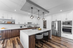 Stunning 2-storey walkout Victory Home, built in 2022 offers over 2,600 sqft with 3 beds & 2.5 Baths and is designed to impress! The open-concept layout with soaring ceilings offers elegance and space from the moment you enter. Love to cook and entertain? The chef’s dream kitchen with Gas Cook Top & Wall Ovens also features a large island with Waterfall Counter tops, pantry, and buffet counter—perfect for gatherings. Main floor includes a den/office or 4th bedroom & Half Bath. Upstairs, the primary suite boasts a 5-piece ensuite, walk-through closet & Private Balcony with serene lake views. Loft Area 2 more spacious bedrooms, full bath, and convenient laundry Room complete the upper floor. Enjoy incredible upgrades: Heated Triple Garage with RV-Height door, A/C, Stamped Concrete Patio, low-maintenance yard with Artificial Turf & limestone, Composite Fence & Gates. Immaculately Maintained—A perfect home for family living—luxurious, functional, and move-in ready!
