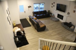 Stunning open concept main floor living! This home features Chef's kitchen with an abundance of cabinetry and counter space, a large center island, pantry and oversized dining area - perfect for family meals or entertaining. The bright living room offers a cozy gas fireplace and plenty of room to relax. Upper level, the primary suite impresses with walk in closet and luxurious 5 piece ensuite complete with soaker tub and separate shower. Two additional bedrooms with generous closet space, 4 piece bathroom and a conveniently located laundry room with built in shelving to complete this level. The unfinished basement includes roughed in plumbing and is ready for your personal design. Outside, enjoy the convenience of a detached double garage. This home has quartz counter tops, extra wide staircase and a bonus with Astoria lighting on front of house.