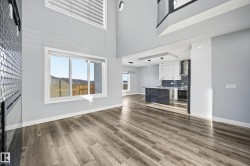 With over 2,460 sq ft, this well-designed 4 bed, 4 bath home in Meadowview has it all. Located steps from Dinosaur Park, the home features a south-backing yard with no rear neighbours, fully landscaped with deck and fencing already complete. The main floor offers a spacious flex area at the front entry, along with a separate main-floor bedroom with its own ensuite. Luxury vinyl plank flooring runs throughout the main level and upstairs main areas, while the bedrooms feature carpet for a warm, cozy feel. The open-to-above great room is filled with natural light and creates an impressive main living space. Upstairs includes a generous bonus room, with the primary suite positioned at the front of the home, complete with a walk-in closet and 5-piece ensuite. Two additional bedrooms share a Jack-and-Jill bathroom. A side entrance allows for future development potential. Spacious, functional, and thoughtfully laid out, this home offers exceptional value in a sought-after community.