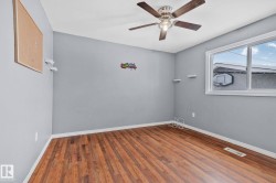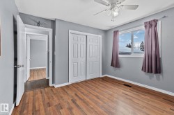 This 1,075 sq. ft. bungalow sits on a very large lot in the family-friendly community of Legal. The main floor offers three good sized bedrooms and a full bathroom, the fully developed basement includes a fourth bedroom, second bathroom, and a cozy gas fireplace, providing flexible living space. The property features a double detached garage with both front-drive as well as rear alley access, offering excellent convenience and investment appeal. With room for kids to play, future development, or added value, the oversized lot is a standout feature. While the home does require some updating, it presents a great opportunity for families looking to customize their space or investors seeking strong potential in a quiet, welcoming town close to schools and amenities.