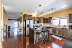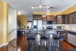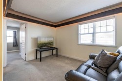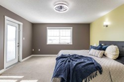 Executive Walk-Out Living with Sweeping River Valley Views - 137 Ranchlands Blvd NEFrom the moment you arrive, this executive walk-out half duplex makes a lasting impression with its distinctive architecture, charming curb appeal, and welcoming covered front veranda. Step inside to a spacious entryway with a generous closet—ideal for busy households and everyday convenience. The main floor is thoughtfully designed for both comfortable daily living and effortless entertaining. At the front of the home, the inviting living room is accented by stylish acoustic panel features and modern LED lighting, creating a warm yet contemporary atmosphere. Toward the back of the home, the space opens to the kitchen and dining area—where the true showstopper awaits. Unforgettable river valley views provide a breathtaking backdrop and can be enjoyed from nearly every angle.The kitchen is both functional and inviting, offering ample cabinetry, granite countertops, and excellent workspace for the home chef. Step outside to the expansive covered deck, complete with sunshade and a gas line for your BBQ—an ideal setting to cook, dine, or relax while taking in the sweeping scenery. The main level also includes a convenient powder room, laundry area, and a smartly designed built-in desk with granite countertop, tucked neatly into a functional workspace nook. Upstairs, the primary suite is a true retreat featuring a walk-in closet, a spacious ensuite with heated floors, and its own private balcony, perfectly positioned to take in beautiful sunrise views and start your day with morning coffee. A versatile bonus room sits between the bedrooms, ideal for a family room, home office, or play space. The second generous bedroom also offers a walk-in closet and is serviced by a full 4-piece bathroom. The fully developed walk-out basement adds even more living space, featuring a comfortable family room, dining area with fridge and coffee bar, a large additional bedroom, a 4-piece bathroom, and ample storage. From here, enjoy direct access to the fully fenced and landscaped backyard with underground sprinklers, as well as the attached garage and large driveway conveniently located off the alley. Bonus Value: This home is being offered fully furnished, with the exception of a few staging pieces—providing a rare, turnkey opportunity for buyers seeking a seamless move-in experience. Offering exceptional comfort, thoughtful design, and views that simply can’t be replaced, this is a truly unique property. Homes like this don’t come along often—schedule your private showing today.