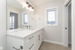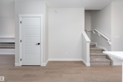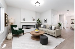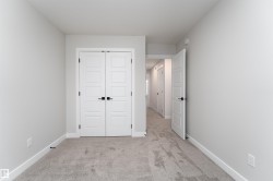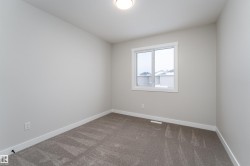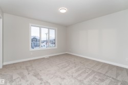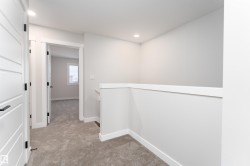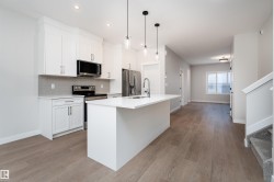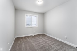 Discover the perfect blend of style, comfort, and opportunity in this stunning brand new 1650 sq ft END UNIT triplex in the heart of Morinville. Nearly complete and loaded with modern features, this two storey home delivers an open and inviting main floor with a sunlit great room and a showpiece kitchen offering quartz countertops, full height cabinets, and a spacious island that is ideal for hosting family dinners or weekend get togethers. Upstairs, enjoy three generous bedrooms, including a bright primary retreat with a walk in closet and private ensuite. Upper floor laundry adds everyday convenience, while luxury vinyl plank flooring, elegant tile work, and fresh neutral finishes create a polished and timeless feel throughout. The SIDE ENTRANCE and potential for a legal suite open the door to future income or extended family living. Perfectly placed near the Morinville Leisure Centre, scenic trails, parks, shops, and cozy cafes, this home delivers small town charm with unbeatable modern living.