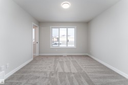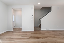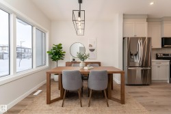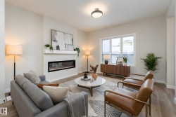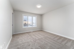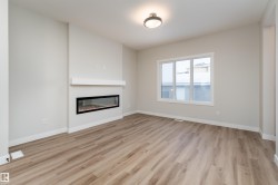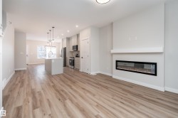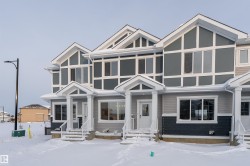 Be the first to call this beautiful, brand-new home your own. This nearly completed 1500 sq ft two-storey triplex in Morinville offers modern design, comfort, and functionality all in one. The open concept main floor features a bright great room and a stylish kitchen with quartz countertops, full-height cabinets, and a spacious island that is perfect for hosting family and friends. Upstairs, you will find three generous bedrooms, including a primary suite with a walk-in closet and ensuite, plus convenient upper-floor laundry. Designer finishes include luxury vinyl plank flooring, elegant tile, and timeless neutral tones throughout. Located close to the Morinville Leisure Centre, scenic walking trails, playgrounds, and local cafes and shops, this home combines small-town charm with everyday convenience. A perfect opportunity to own a never-lived-in home that offers style, comfort, and a fresh start in a growing community.