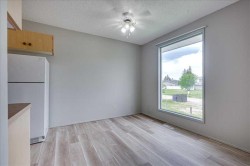 Cash flowing building in Olds! Great opportunity in a desirable area of Olds with green space in front and behind this 4-plex. Each corner unit offers 2 bedrooms, 1 bathroom, in-suite laundry, balconies, and separate furnaces, hot water tanks and water meters. There are 6 powered parking stalls. All units have undergone upgrades over the years, with major updates in the past decade, including exterior siding, asphalt shingles, eavestroughs, fascia, soffit, wood decks, as well as improvements to bathrooms, flooring, and painting. Photos are from when one unit was vacant - building is fully leased. Olds is home to a hospital, agricultural university, and excellent local services, plus quick access to the Calgary International Airport. One tenant currently has utilities included, while the others pay their own gas, power, water, sewer, and garbage. Looking ahead, the building has the potential to be condo-ized, with units sold off individually. Property is professionally managed. 1 new stove and 1 new dryer were purchased in the last couple of months.