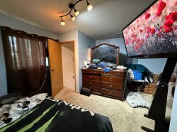 Nestled in a quiet and prime neighbourhood, this inviting 2-storey home offers a perfect blend of functionality, comfort, and privacy. Step inside to the heart of the home. The large kitchen and dining area serve as the central hub, ideal for family meals or hosting gatherings. Ascending the unique staircase, which branches upward to both sides, you'll find a thoughtful separation of sleeping quarters. On one side, two cozy bedrooms share a well-appointed full bathroom, providing comfortable accommodations for children, guests, or a home office setup. On the opposite side, the serene master suite awaits, complete with a spacious master bedroom and an en-suite master bath for ultimate privacy and convenience. This divided layout ensures peace and quiet, making it easy to unwind after a long day. The home sits on a spacious lot with a fully fenced yard, providing a secure and private outdoor area for pets, children, or entertaining. The highlight is the oversized detached garage measuring 28 x 30 feet—perfect for multiple vehicles, a workshop, or additional storage.