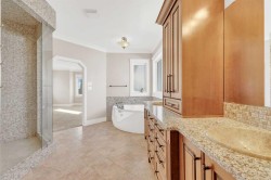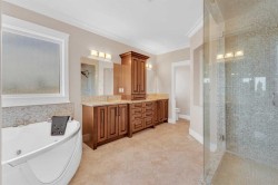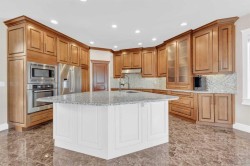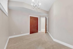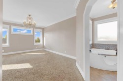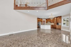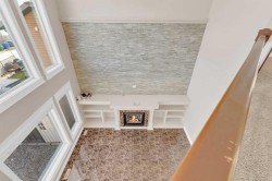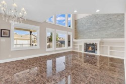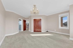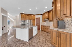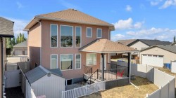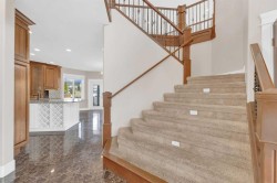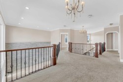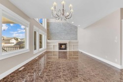 Welcome to 3 Trump Place—an exceptional, fully developed executive home located in one of Red Deer’s most desirable, private closes. This 4-bedroom plus den, 3.5-bathroom residence is the perfect blend of timeless elegance and modern design, offering superior craftsmanship and luxurious details throughout. From the moment you arrive, the curb appeal is undeniable. The grand double iron doors open into a dramatic two-storey foyer adorned with granite flooring and an abundance of natural light. The attention to detail is immediately evident in the custom finishings, upscale materials, and thoughtful layout designed for both family living and entertaining. The chef-inspired kitchen is as functional as it is beautiful, featuring rich cherry wood cabinetry, granite countertops, high-end appliances, and a large island with eating bar. A walk-in pantry, full tile backsplash, and undermount sink elevate the space. The adjoining dining area offers access to the covered deck and beautifully landscaped backyard, perfect for outdoor gatherings. The open-concept great room is anchored by a floor-to-ceiling stone fireplace flanked with custom maple shelving, creating a warm and inviting atmosphere. A private main-floor office with French doors, a convenient 2-piece powder room, and a spacious laundry room with built-in cabinetry and a sink complete the main level. Upstairs, the spacious bonus room overlooks the main living area, while the serene primary suite offers vaulted ceilings, large windows, a walk-in closet with built-ins, and a spa-like ensuite featuring a soaker tub, oversized tiled shower, double vanity, and separate water closet. Two additional bedrooms and a beautifully appointed full bathroom are also located on the upper level. The fully finished basement features in-floor heat, granite tile flooring, 9-foot ceilings, a large family room with wet bar, fourth bedroom, a separate den, and a full bathroom. This level adds both comfort and flexibility to suit your family's needs. Additional highlights include air conditioning, built-in sound wiring and high speed cat 5 wiring for high speed gaming etc., solid wood doors, premium light fixtures including chandeliers, and a heated, finished double garage. The backyard is fully fenced with vinyl, offers back-alley access, and includes a firepit area and storage shed. Ideally situated within walking distance to schools, playgrounds, parks, churchs, and all the amenities of both Timberlands and Clearview Market Square, this property combines the best of location, luxury, and lifestyle. Homes of this calibre and setting rarely come to market—experience the quality and attention to detail for yourself at 3 Trump Place.