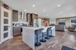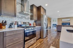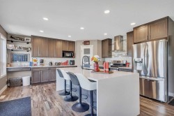 Step into your next chapter with this beautifully updated 2-story home in Rocky Mountain House—offering the perfect blend of style and space, complete with both attached & detached garages, a bonus room, a newer roof, and vinyl windows that make it truly one of a kind. From the moment you arrive, you’ll be impressed by charming curb appeal. Step inside to an open-concept main floor filled with natural light from oversized windows, anchored by a gas fireplace with mantel in the living area. The renovated kitchen is a showstopper—featuring sleek new cabinets, a stylish backsplash, gas range, luxurious waterfall quartz countertops, breakfast bar, & pantry. A convenient 2-piece bath and mudroom complete the main level. Upstairs, you’ll find 3 spacious bedrooms, 2 full bathrooms, and laundry right where you need it. The primary suite is a true retreat with a walk-in closet and private 4-piece ensuite. The fully finished basement is a standout feature with a generous rec room, complete with a wet bar/kitchenette, fridge and stove, a 4th bedroom, and a 3-piece bath—perfect for guests or teens. Outside, enjoy your own private oasis in the fenced backyard with a large deck for summer BBQs and quiet evenings. There’s ample parking in the back, plus the detached garage adds extra versatility and storage. This home has it all—style, substance, and space to grow. Come see it for yourself and fall in love with life in Rocky Mountain House!