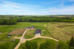 Country Living at its Finest - LISTED UNDER APPRAISED VALUE!!! Welcome to 160 ACRES of natural beauty This stellar property is one to feast your eyes on. Whether you are a person to love space, elegance, nature or perhaps animals this property will suit all your needs. The beautiful custom built 2 story home has character galore and offers beautiful wood header and trim throughout. I LOVE all the wood work- You don't see that as often anymore. You will be gleaming with smiles as you enter this 6 bedroom, 3.5 bathroom homes front entrance, leading to the granite counter topped kitchen with built in oven, microwave and stove top gas burner plus a large dining area with deck access. The spacious living room features tons of built ins and a gas fireplace with easy access to deck. Just when you think that's it, just around the corner, there's another nook show casing a 2 pc powder room, laundry garage access and the grand entrance to the primary room that will take your breathe away with the built-ins, walk in closet and stunning 5 pc ensuite and access to the deck. Upstairs is just as spacious and stunning with 2 large bedrooms, family room with gas fireplace, bathroom and its own balcony that over looks this amazing acreage. Downstairs continues this vibe and boasts a gym, family room , 2 more large bedrooms and full bathroom plus in floor heated floors for comfort. This property has a triple attached heated garage, triple detached heated garage PLUS a huge heated shop/ stable with storage and office space. Over 30 Acres fenced/gated pens, 4 large paddocks to shift the animal from one pasture to the other PLUS barrel riding in the outdoor pen, training grounds, large chain link enclosures in back for chickens/ goats, automatic watering bowl and fenced in garden area. There is currently 50ACRES of Agriculture farmland that brings in a revenue currently for hay/timothy/alfalfa mixture. If this doesn't sound like the perfect house and property then I don't know what will ! Book your showing today and make your dream a reality! Property has a well for the animals and a 3500GAL cisterns for the house. Septic is a tank plus filtering system field. Former owners had a dog kennel business with dog runs. Anything is possible with a property like this...