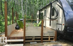 Here is a 0.186 Acre site in Lake Arnault RV resort that is ready to enjoy! Located up in a quiet cul-de-sac, 3 sides of the lot are surrounded by trees for privacy. This site has recently been leveled with a thick gravel pad and a 9’x21’ deck (2025). This project is a bare land condominium with a condo fee of $1200 annual that includes your water and 3 tank removals. There is municipal water from May to mid October, 3 phase electrical hook-up and a 70 gallon holding tank. Internet is accessible. Located 1 hour West from Edmonton it’s a gated community with amenities such as a newly constructed bathhouse with 3 private full washrooms and a laundry room, a play park, boat storage and access to the lake, a gazebo, guest camping for family and friends and in 2026 a storage area will be built for your larger out-door toys (quads, ski-doo’s, motor boats, etc). There is always lots to do out here with walking trails, wildlife watching or a canoe ride around the lake. A perfect home away from home!