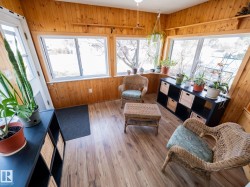 Welcome to this charming, beautifully updated bungalow in Yellowstone—just a short stroll to the lake with access to a shared dock and boat launch! The heart of the home is a stunning, renovated kitchen with butcher block island, stainless steel appliances, and backsplash, flowing into a cozy dining/living area with a wood-burning fireplace. Enjoy quiet mornings in the sunroom, filled with natural light. The main floor features a spacious primary bedroom with 3-piece ensuite, two more bedrooms, and a stylish full bath (updated in 2025). Downstairs offers a large family room, laundry/mechanical room, and a double attached garage. Upgrades include 2 furnaces, A/C, and HWT (2018), pressure tank (2024), windows, siding, soffits (2015), roof (2014), new landscaping, municipal sewer connection (2018) and freshly stained siding