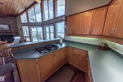 Over 2100 sq ft WATERFRONT home perfectly situated on the shores of Lac Ste. Anne, just a short walk to the main beach, restaurants, seniors centre, museum, library, and local grocery stores. Enjoy unbelievable sunset views from the expansive front deck overlooking the sandy beach frontage. The triple attached heated garage has been recently finished and painted. Inside, the spacious open-concept main floor features a large living room, dining area, and kitchen with cathedral ceilings, a striking shale rock feature wall fireplace, and a custom built-in entertainment cabinet. The primary bedroom includes a walk-in closet and a full ensuite with a jacuzzi tub. Completing the main level are the laundry area, a den with built-in Murphy bed, and a 2-piece bath. Upstairs offers a bonus room, two generous bedrooms, a full bath, and access to a private upper deck. Many upgrades over the years. This beautiful lakeside property is move-in ready and offers perfect comfort, style and lakefront living.