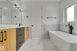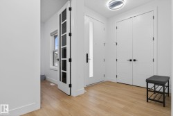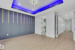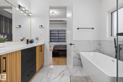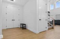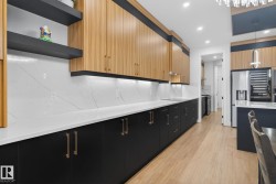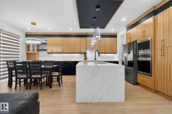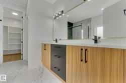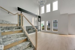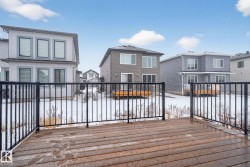 MOVE-IN-READY. Includes, APPLIANCES, WINDOW COVERINGS, SPICE KITCHEN DECK, SEPERATE SIDE ENTRANCE to bsmt. 4 bedrooms and 3 FULL Bathrooms. The main floor features a bedroom with a full bathroom. The family room showcases a striking open to below design enhanced by a feature wall. The custom kitchen is a true showpiece with ceiling height, 2 toned cabinetry with extended nook cabinetry. The 2nd kitchen is equipped with a sink, gas cook top and ample storage space. The glass railed staircase with step lighting leads to the 2nd floor spacious bonus room. A laundry room with a sink and cabinets. The primary suite impresses with an indent ceiling, accent wall and a spa like 5-piece ensuite featuring dual vanity, custom shower and WIC. Additionally 2 generously sized bedrooms and a 4-piece bathroom complete this level. Feature walls, premium lighting package, MDF shelving, VINYL flooring throughout plus much more. Minutes away from South Edmonton and Airport. Close to amenities. A must see!