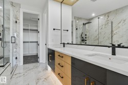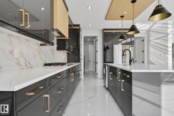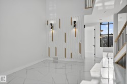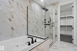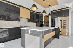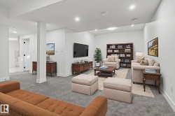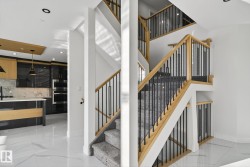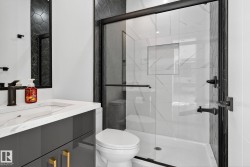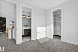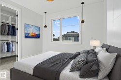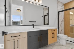 Welcome to your extraordinary future home in IRVINE CREEK North, Leduc county – a stunning blend of LUXURY, MODERN DESIGN, and INCOME POTENTIAL! This custom prairie-modern 2-storey offers almost 4000 SQ. FT. of finished space. The STRIKING EXTERIOR boasts woodgrain cladding, sleek panels, vinyl siding and stone accents. Inside, 9 ft CEILINGS and tall back windows create a bright, airy feel. The MAIN FLOOR features a SPICE KITCHEN, MUDROOM, DEN, BEDROOM WITH WALK-IN CLOSET, FULL BATH, and two “OPEN TO BELOW” SPACES. Upstairs, enjoy TWO MASTER SUITES with SPA-LIKE ENSUITES, TWO MORE BEDROOMS, BONUS ROOM, LAUNDRY, and a showstopping CATWALK. The FULLY FINISHED LEGAL 1-BED BASEMENT SUITE with BAR offers RENTAL OR MULTI-GENERATIONAL POTENTIAL. ENERGY-EFFICIENT, FIRE SPRINKLER-EQUIPPED, and complete with a CHARMING DROPPED DECK, this home is a rare gem. Embrace MODERN ELEGANCE, COMFORT, and CONVENIENCE in this exceptional Irvine Creek residence!