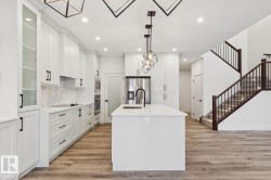 Brand New and finished to perfection! This home has it all, 5 bedrooms, 3 bathrooms, SPICE KITCHEN, OPEN TO BELOW IN LIVING ROOM and SIDE SEPARATE ENTRANCE. This home features beautiful luxury vinyl plank, upgraded plumbing, lighting and more. The functional layout offers a bedroom on the main level which can also be used as a den, a full bath, generous dining area, huge living room with fireplace and a breathtaking kitchen. The custom kitchen features soft close cabinets, quartz countertops and fully equipped with stainless steel appliances. Not to forget, the kitchen also includes a spice kitchen that walks through to the mudroom. The upper level is where you will find the additional 4 bedrooms, 2 full bath, bonus room and laundry. The primary bedroom is absolute stunning and includes its own walk-in closet and beautiful 5pc ensuite with his and her sinks. This home includes a double attached garage and comes with New Home Warranty. This is a must see.